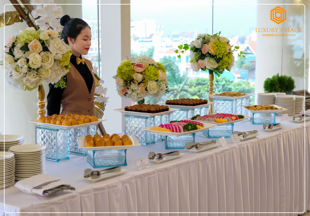 Địa điểm tổ chức bàn tiệc bánh ngọt thường được tổ chức gần với nơi diễn ra sự kiện.